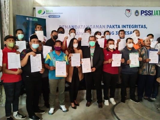 Surabaya – Menjelang Babak 32 Besar Asprov PSSI Jatim mengikat komitmen pencegahan praktik suap dan pengaturan skor dengan seluruh elemen sepak bola Indonesia melalui penandatanganan pakta integritas pada Jumat (26/11/2021) di salah satu rumah makan di Surabaya.